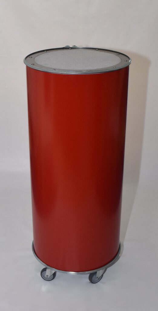 Ummantelt ist RALFI mit einem Stahlgehäuse, das komplett ohne Kunststoff auskommt. Das Gehäuse kommt dabei in allen Regenbogenfarben daher: Auch individuelle Mischungen oder Sonderfarben sind kein Problem. Durch seine fünf Rollen steht RALFI nicht nur extrem stabil, man kann ihn auch problemlos über verschiedene Räume hinwegbefördern. Selbstverständlich lassen sich die Rollen für einen fixierten Stand aber auch feststellen. Die komplette Bauweise mit Stahl aus Deutschland in Verbindung mit der individuell gewählten Farbe kombiniert ein wunderschönes Industriedesign mit einer persönlichen Note abgestimmt auf jeden Kunden.